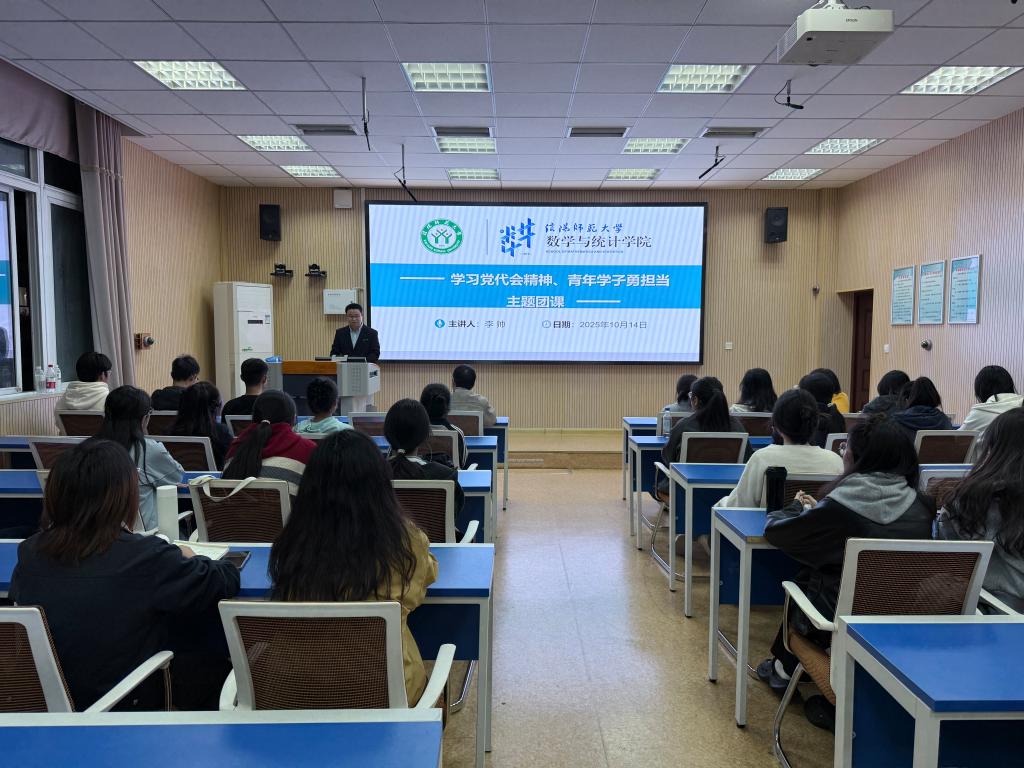 10月14日, 自慰a片 在数学楼507教室举办了“学习党代会精神 青年学子勇担当”主题团课。团课由学院团委书记李帅主讲,全体学生会干部参加。