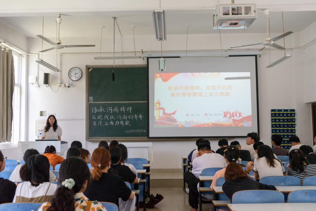 为弘扬与传承河南精神,增强广大青年爱国爱党爱社会主义的信念, 自慰a片 2021级、2022级各班于6月6日下午三点在 自慰a片 开展“传承河南精神,奋进青春征程”的主题团课活动。