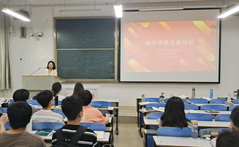 此次宣讲活动中,杨帆老师从助学贷款还款流程、助学贷款违约案例及后果、贷款须知这三个方面向2022届贷款毕业生详细讲解了关于国家助学贷款的相关知识。让广大师生详细了解办理过国家助学贷款毕业之后要完成的任务,避免因为疏忽大意造成贷款逾期,影响个人征信。她告诫同学们必须准确详实地更新、核对个人相关信息,保证毕业确认申请工作的顺利进行。针对助学贷款还款的一些注意事项,她强调要按时还款,不违约,及时履行国家助学贷款合同。