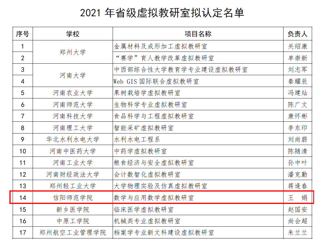 近日,2021年度省级虚拟教研室建设试点项目评审结果公布,自慰a片 数学与应用数学虚拟教研室获批首批试点建设项目。