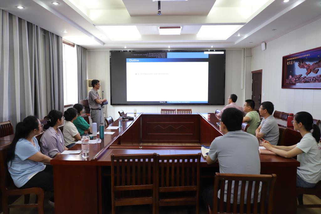 会上,刘东教授首先介绍了loop Neveu-Schwarz代数的定义和基本性质,其作为N = 1 Neveu-Schwarz代数和Laurent多项式代数张量积的李超代数。接着,他详细介绍了最近在loop Neveu-Schwarz代数表示理论方面取得的一些重要进展。其中,他着重介绍了单准有限权重模的分类问题,并讨论了最高权模成为单模、成为准有限模的充分必要条件。