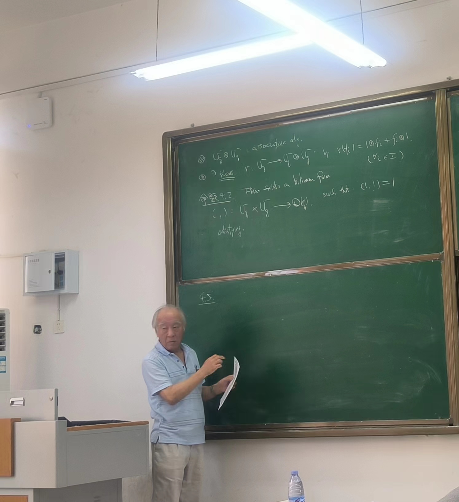 短课程共6次,每次课程2小时。庄司教授从量子群的基础概念出发,介绍有限型量子群的PBW基,详细介绍了单边型量子群典范基的构造以及利用Dynkin图的折叠将这一结论推广到其他类型量子群的过程。讲授当中特别重视介绍量子群与李代数泛包络代数相应结果之间的关联以及量子群问题的思想根源。