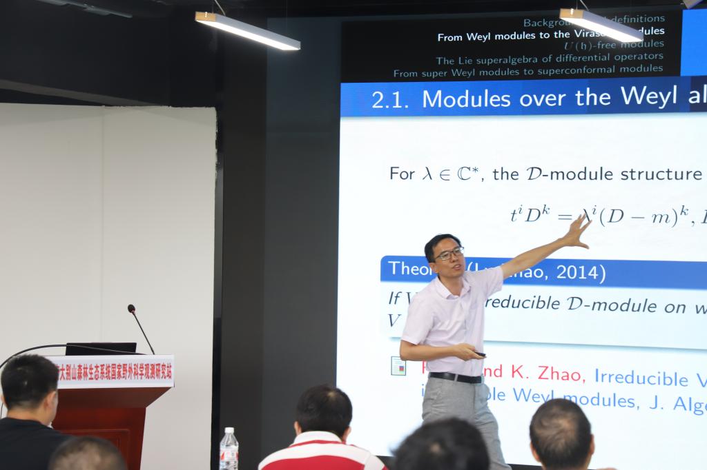 湖州师范学院的刘东做了题目为《From super weylmodule to super Virasoro modules》的报告。
