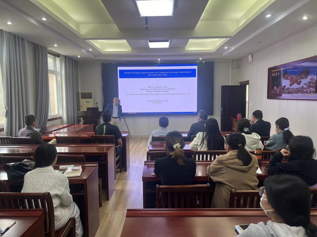 10月5日上午,应 自慰a片 邀请,北京交通大学孔令臣教授作了题为《Sample Average Approximation for Conditional Stochastic Optimization with Dependent Data》的学术报告。报告会由蔡礼明教授主持,部分老师及研究生聆听了此次报告。