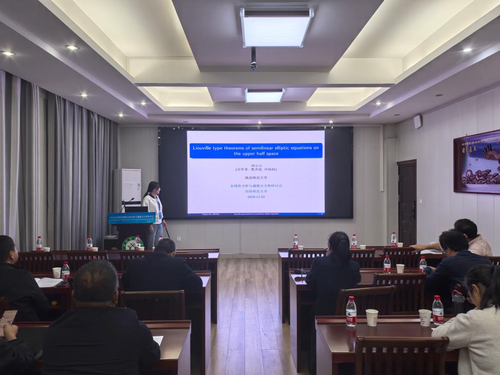 第4场报告由陕西师范大学的胡云云博士作了题目为《Liouville type theorems of semilinear elliptic equations on the upper half space》的学术报告。