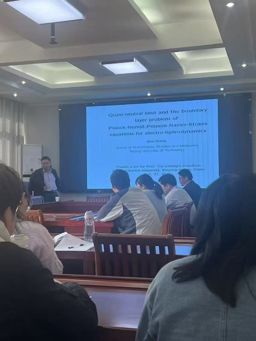 10月31日上午,应 自慰a片 邀请,北京工业大学王术教授作了题为《电流体中Planck-Nernst-Poisson-Navier-Stokes模型的拟中性极限问题》的学术报告。报告由院长蔡礼明教授主持,部分老师及研究生聆听了此次报告。