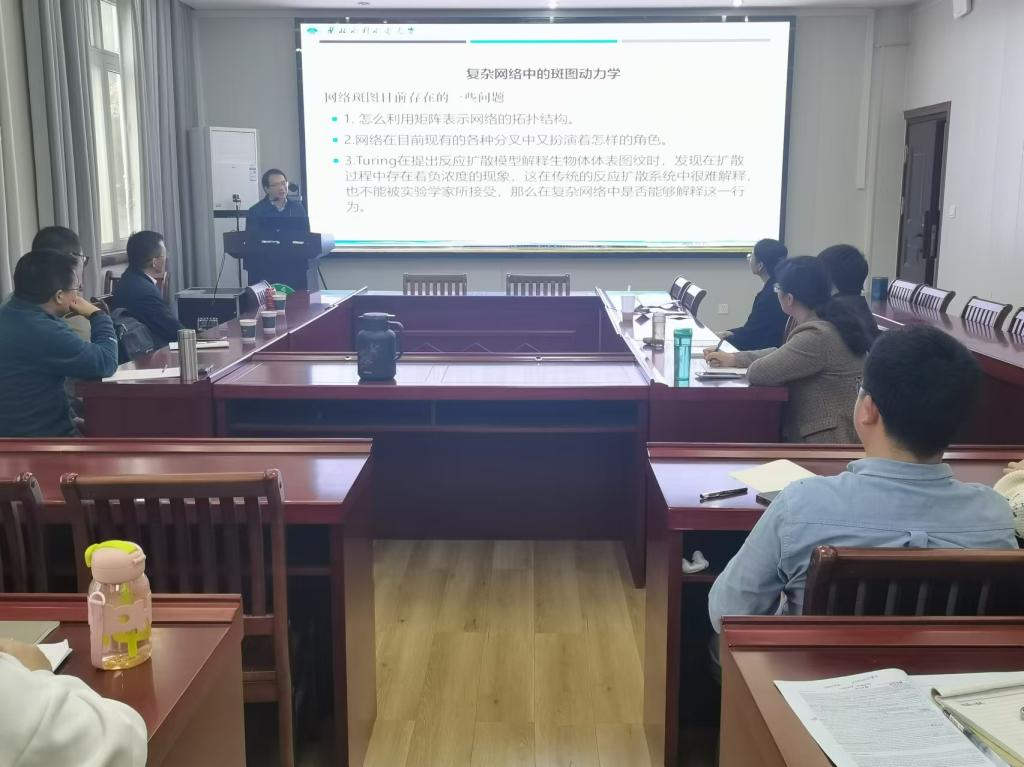 11月15日下午,应 自慰a片 邀请,华北水利水电大学申建伟教授在数学楼315会议室为 自慰a片 师生作了题为“生物反应扩散系统的斑图动力学”的学术报告。报告由副院长王霞教授主持,生物数学方向的老师及研究生聆听了此次报告。