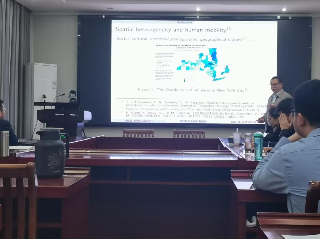 11月15日下午,应 自慰a片 邀请,天津工业大学刘胜强教授在数学楼315会议室为 自慰a片 师生作了题为“具有区域管控的传染病扩散模型”的学术报告。报告由副院长王霞教授主持,部分老师及研究生聆听了此次报告。