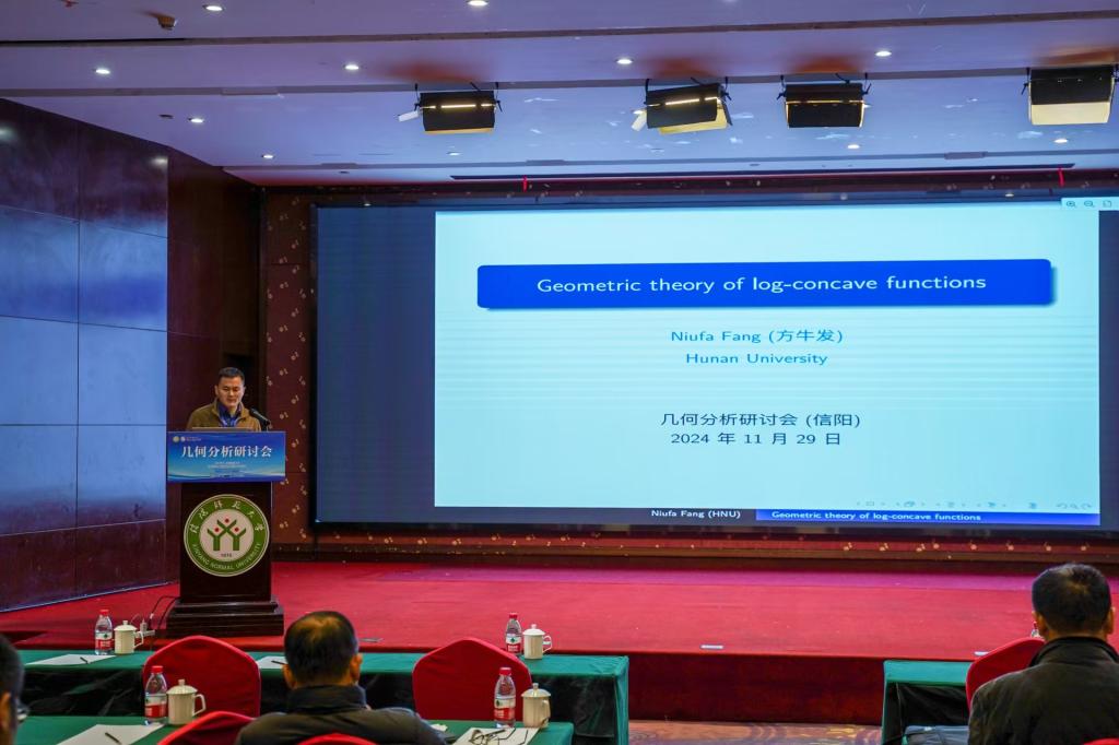 4场报告是由湖南大学的方牛发教授作了题目为“Geometric theory of log-concave functions”的学术报告,此场报告由重庆理工大学的林乾教授主持。