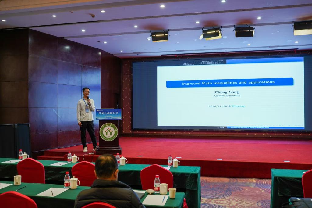 2场报告是由厦门大学的宋翀教授作了题目为“Improved Kato inequalities and applications”的学术报告,此场报告由中山大学的袁伟教授主持。