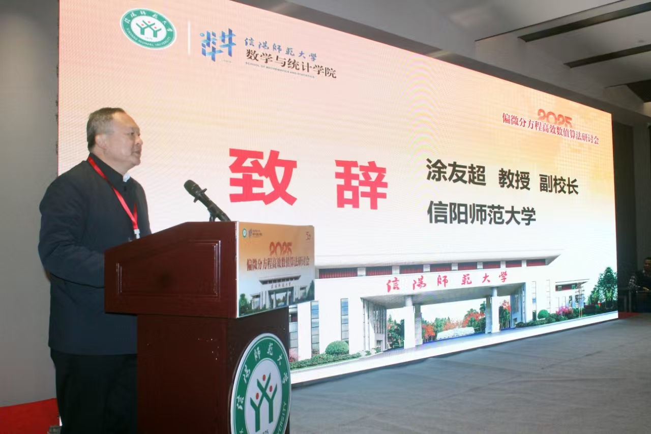 涂友超代表学校致欢迎辞,向出席会议的专家学者表示热烈欢迎,向支持 自慰a片 发展的专家学者表示衷心感谢,简单介绍了学校的基本情况和近年来建设高水平师范大学方面所取得的成就。重点介绍了 自慰a片 计算数学团队近年来取得的成绩和未来发展规划。涂友超强调数学学科作为自慰a片 优势学科,一直受到学校的高度重视与重点支持。当前学校数学学科正处于申报博士点、实现跨越式发展的关键时刻,希望与会专家学者对 自慰a片 数学学科建设提出宝贵意见和建议,加强交流与合作,推动 自慰a片 数学学科快速发展,助力博士点培育建设。预祝本次研讨会取得圆满成功,期待通过此次盛会,携手共创数学研究的新篇章。学术委员会成员陈荣亮研究员致辞,对偏微分方程高效数值算法研讨会的召开表示热烈祝贺,对 自慰a片 高度重视、精心组织和辛勤工作表示感谢,对各位专家的大力支持表示感谢。对 自慰a片 近年来取得的办学成就和 自慰a片 计算数学团队取得的科研成果给予了高度评价。