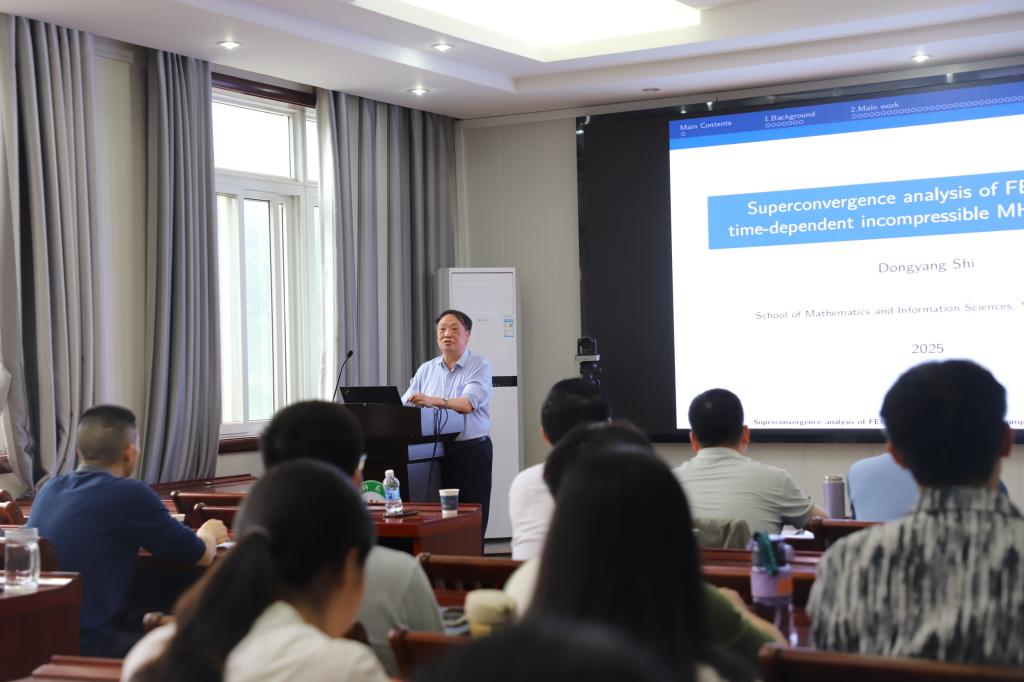 4月21日下午,应 自慰a片 邀请,烟台大学石东洋教授在数学楼315会议室作了题为《Superconvergence analysis of FEM for the time-dependent incompressible MHD equations》的学术报告。报告会由院长蔡礼明教授主持,部分老师及研究生聆听了此次报告。