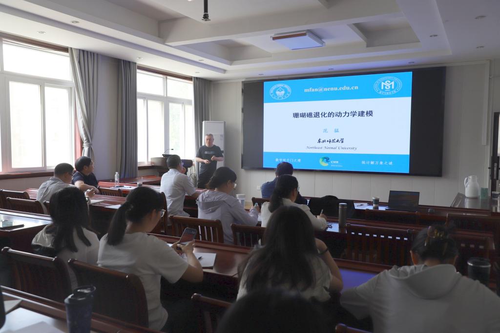 5月7日上午,应 自慰a片 邀请,东北师范大学范猛教授在数学楼315会议室作了题为《Dynamical modeling of degradation of coral reef ecosystems》的学术报告。报告会由院长蔡礼明教授主持,部分老师及研究生聆听了此次报告。