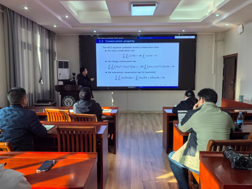 12月25日上午,应 自慰a片 邀请,华中科技大学李东方教授作了题为《薛定谔方程的高阶超松弛方法》的学术报告。报告会由李世顺教授主持,部分老师和研究生聆听了此次报告。