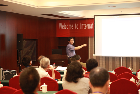 第七场学术报告由同济大学贺群主持。上海(Shanghai Second Polytechnic University, China)种田作了题为《Rigidity theorems of complete K¨ahler-Einstein manifolds and complex space forms》的报告。