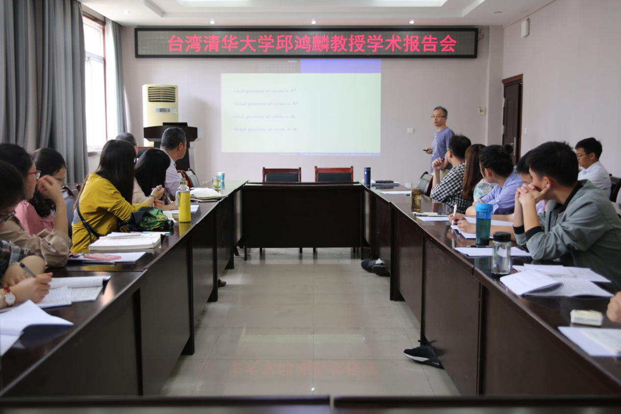 2018年5月12日上午,应 自慰a片 邀请,台湾清华大学邱鸿麟教授在数学学院学术报告厅作了题为“The Global properties of curves in the Heisenberg group of 3D”的学术报告。报告会由 自慰a片 院长胡余旺教授主持,该院部分教师和研究生聆听了此次报告。