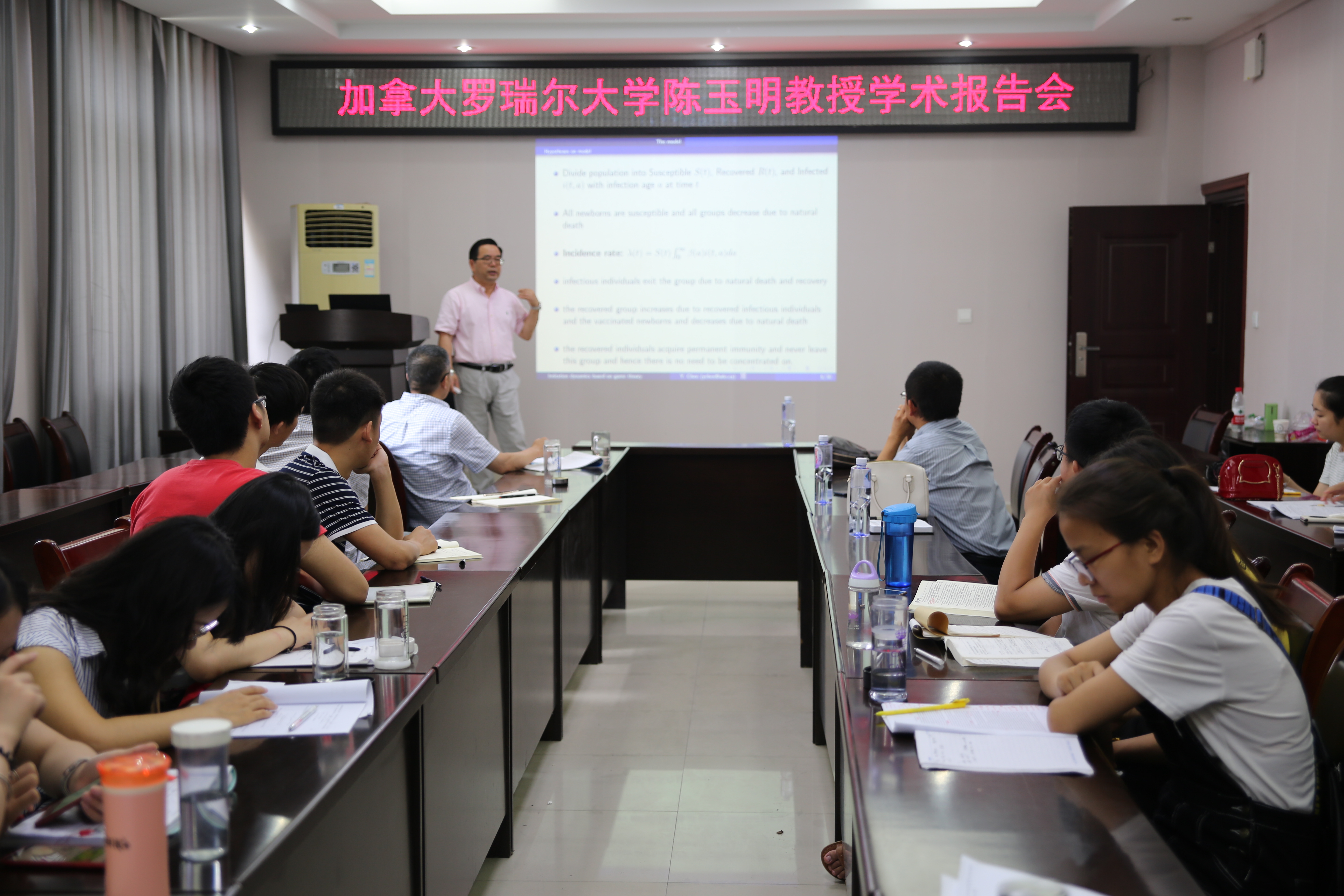 6月21日,应 自慰a片 邀请,加拿大罗瑞尔大学陈玉明教授在 自慰a片 学术报告厅分别作了题为“Global analysis of a viral model with both cell-free and cell-to-cell infection modes”和“Imitation dynamics of vaccine decision-making behaviors based on the game theory”的学术报告。报告会由 自慰a片 副院长蔡礼明教授主持,学院部分教师、研究生聆听了此次报告。