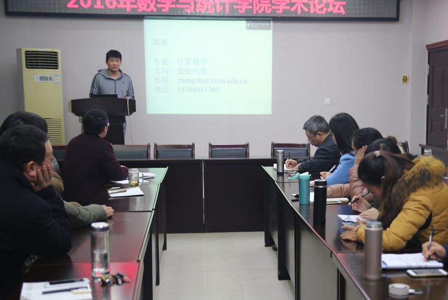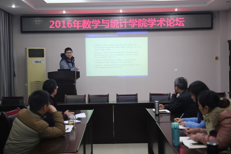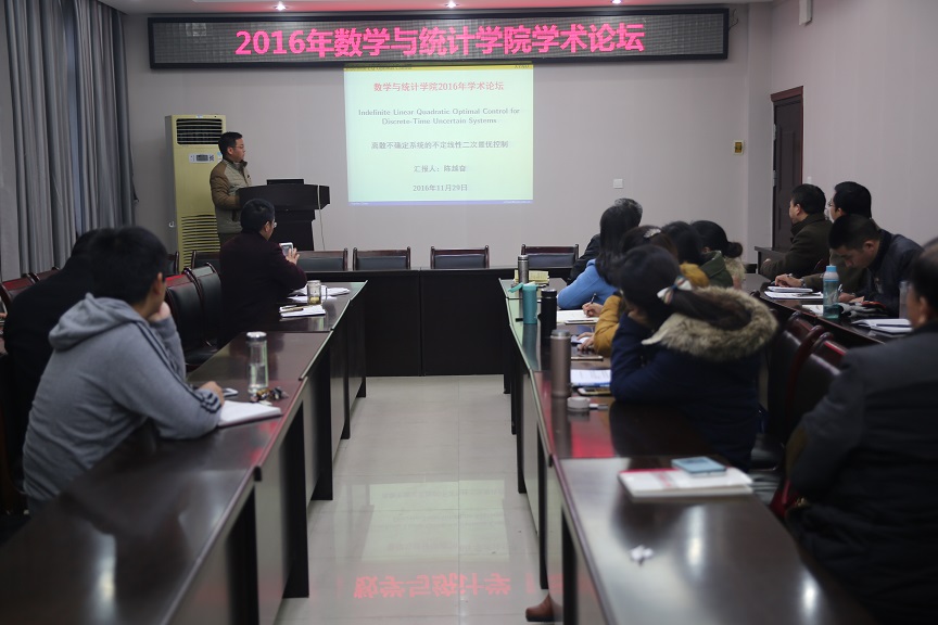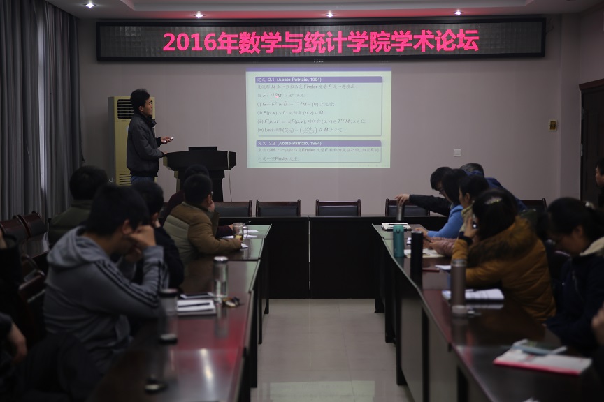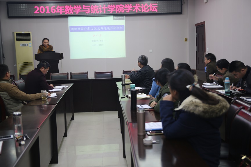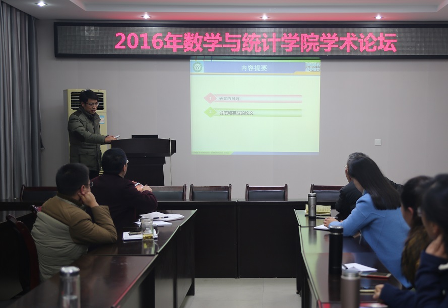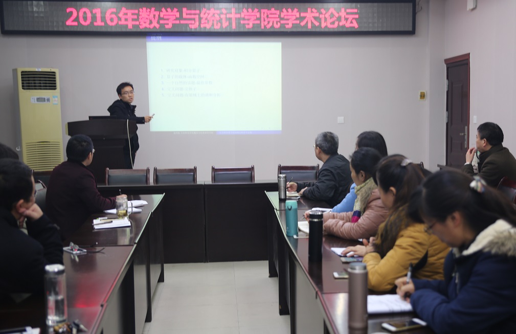 为了倡导教师间交叉合作研究,推动学院学术水平和科技创新再上新台阶, 自慰a片 于11月29日在数学学院学术报告厅举办了2016年度“学术论坛”报告会。数学学院部分教师和研究生参加了活动,报告会由该院副院长蔡礼明教授主持。
