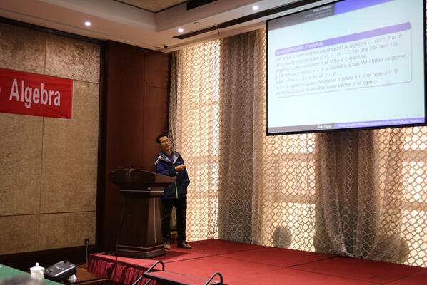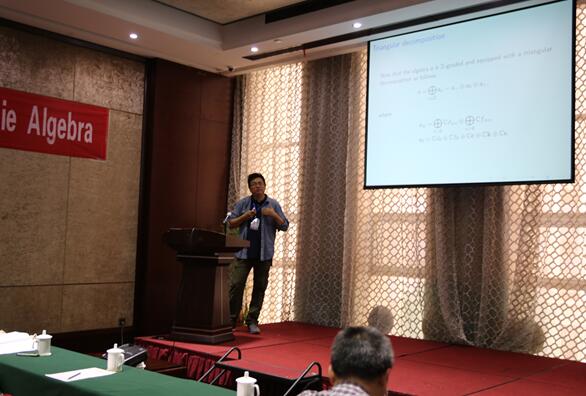 乌兹别克斯坦国立大学的Bakhrom Omirov主持了第四场和第五场学术报告。 第四场来自中国科学院的蔡延安作了题目为《Module structures on  for affine  Lie algebras and the (full) toroidal  Lie (super) algebras》的报告。