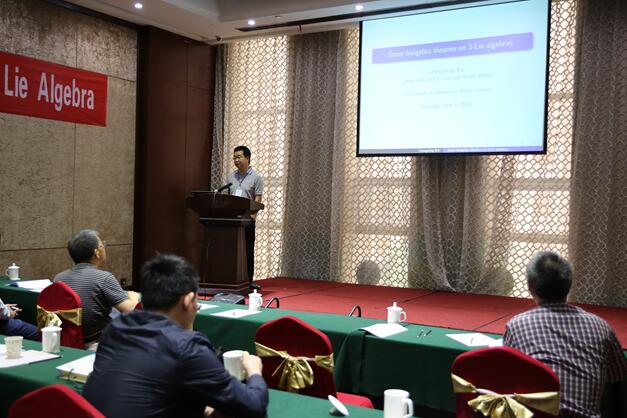 华东师范大学舒斌主持了第二场和第三场学术报告。第二场来自南开大学的白承铭作了题目为《Some bialgebra theories on 3-Lie algebras》的报告。