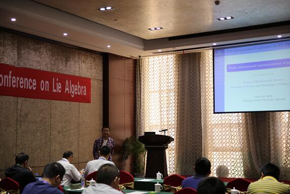 加拿大罗瑞尔大学赵开明主持了第十二场、第十三场的学术报告。第十二场来自中国科学技术大学陈洪佳作了题目为《Finite dimensional representations of g(C) 》的报告。