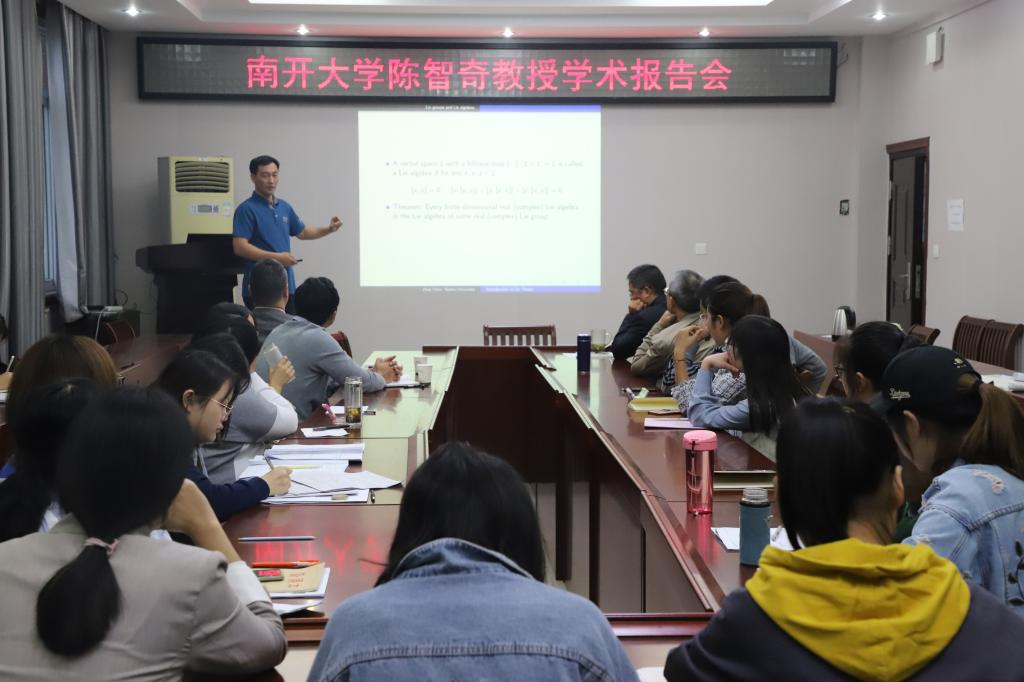 10月8日下午,应 自慰a片 邀请,南开大学陈智奇教授在 自慰a片 学术报告厅作了题为“李理论简介”的学术报告,报告会由 自慰a片 副院长蔡礼明教授主持, 自慰a片 院长胡余旺教授和部分老师及研究生聆听了报告。