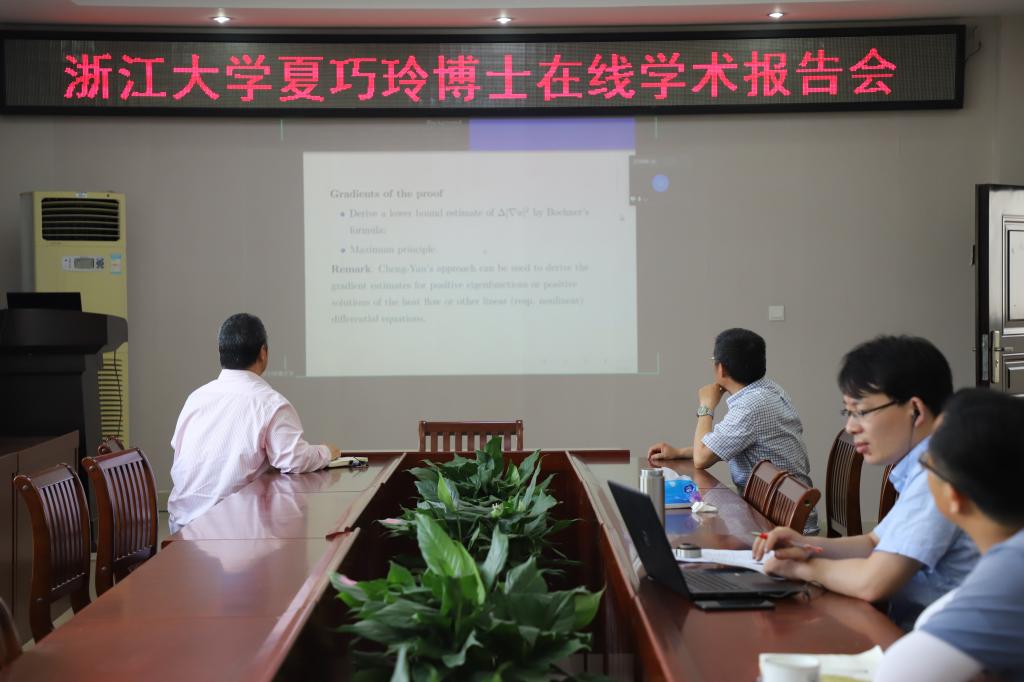 6月6日,浙江大学夏巧玲博士应 自慰a片 邀请,通过腾讯会议平台为学院师生做了题为“Local and global gradient estimates for Finsler p-eigenfunctions”的学术报告。报告会由 自慰a片 副院长蔡礼明教授主持,学院部分老师和研究生在线聆听了此次报告。