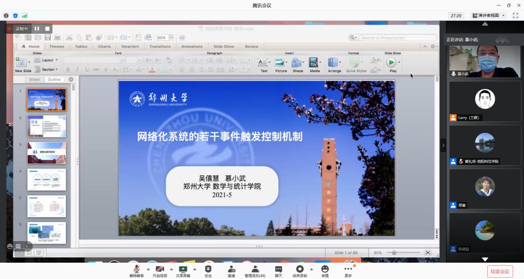 5月17日上午,应 自慰a片 邀请,郑州大学慕小武教授通过腾讯会议平台做了一场题为《网络化系统的若干事件触发控制》的在线学术报告。报告会由 自慰a片 党委书记王娟主持,学院部分老师和研究生聆听了此次报告。