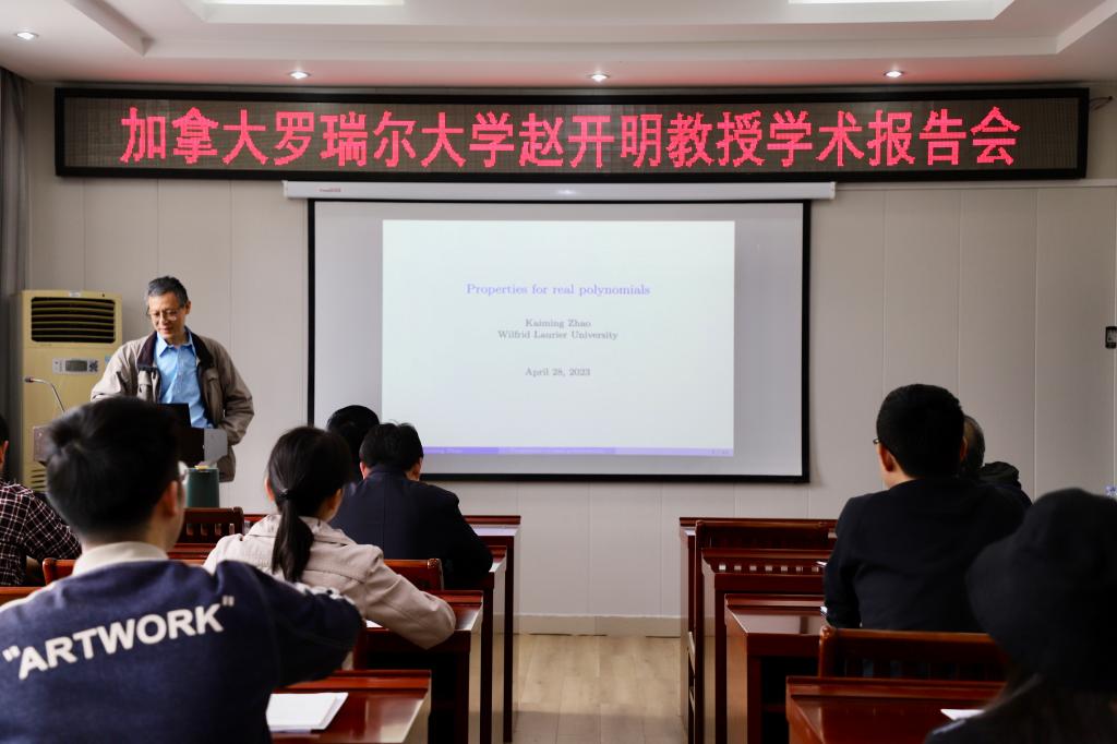 4月28日上午,应 自慰a片 邀请,加拿大罗瑞尔大学赵开明教授在学院报告厅315作了题为“Properties of real polynomials”的报告。报告会由 自慰a片 院长蔡礼明教授主持,部分教师和研究生参加了此次报告会。
