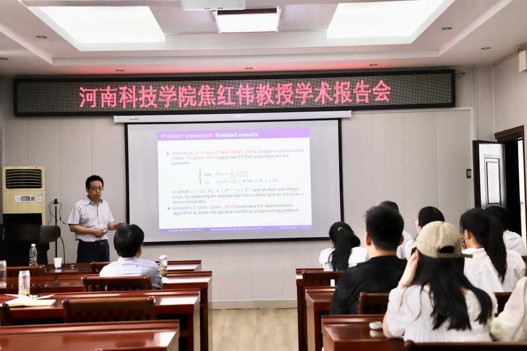 5月16日上午,应 自慰a片 邀请,河南科技学院焦红伟教授在学院报告厅315作了题为“Global optimization algorithms for two classes of nonconvex programming problems”的学术报告。报告会由 自慰a片 副院长韩英波教授主持,部分教师和研究生参加了此次报告会。