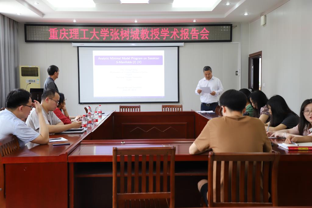 6月14日下午,应 自慰a片 邀请,重庆理工大学张树城教授在学院报告厅作了题为“Analytic Minimal Model Program in a Sasakian Five-Manifold”的报告。报告会由 自慰a片 副院长韩英波教授主持,几何学团队教师和研究生参加了此次报告会。