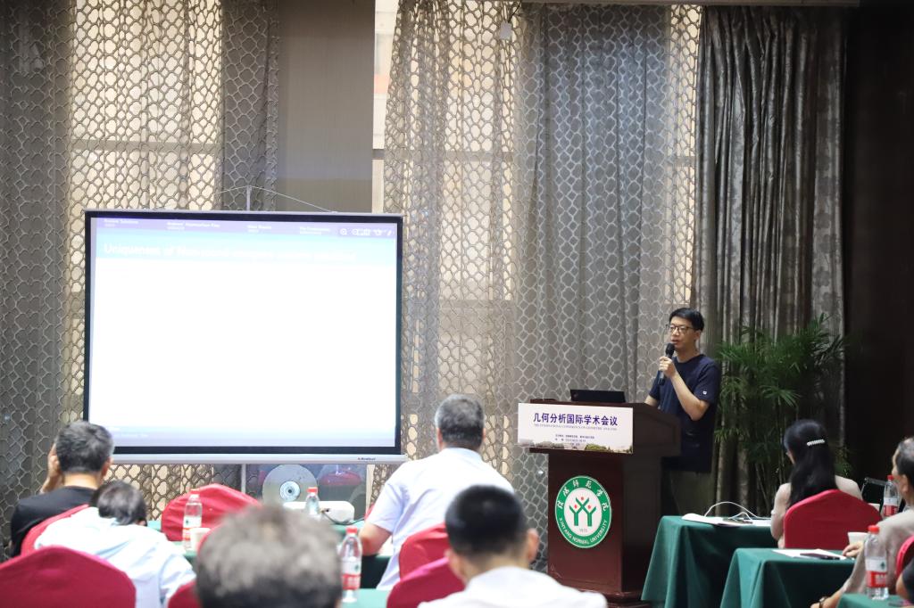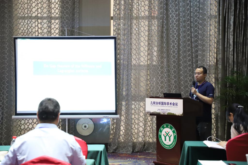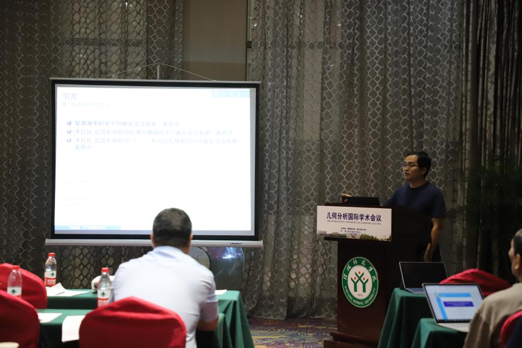 第3场报告由武汉大学邱红兵副教授报告,题目为《Bernstein type results of translating solitons of the mean curvature flow》。在报告中,邱红兵副教授得到了平均曲率流的平移孤立子的一些Bernstein型结果。