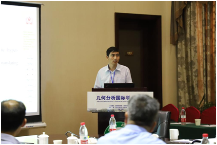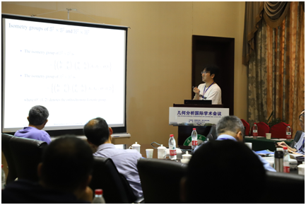 第4场报告由清华大学姚泽科博士后报告,题目为《Hypersurfaces of S^2×S^2 with constant sectional curvature》。在报告中,姚泽科博士后给出了S^2×S^2中具有常截面曲率的超曲面的完全分类。
