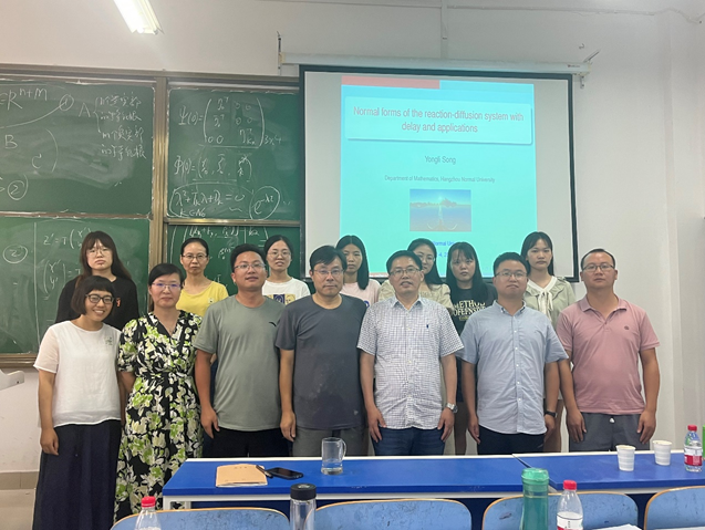 8月4日下午, 杭州师范大学宋永利教授在学院502教室作了题为“Effect of nonlocality on the dynamics of memory-based diffusion equations”的学术报告,报告会由 自慰a片 院长蔡礼明教授主持,学院生物数学方向教师和研究生参加了此次报告会。