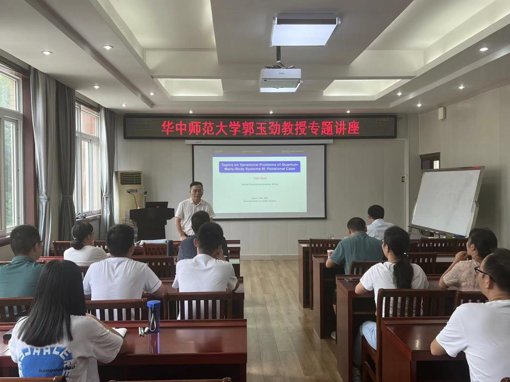 应 自慰a片 邀请,华中师范大学郭玉劲教授于8月18日下午在数学楼315报告厅进行了系列专题讲座,主题为“Topics on variational problems of quantum many-body system”。 讲座由院长蔡礼明主持,学院部分专业教师、研究生和高年级本科生参加了此次讲座。