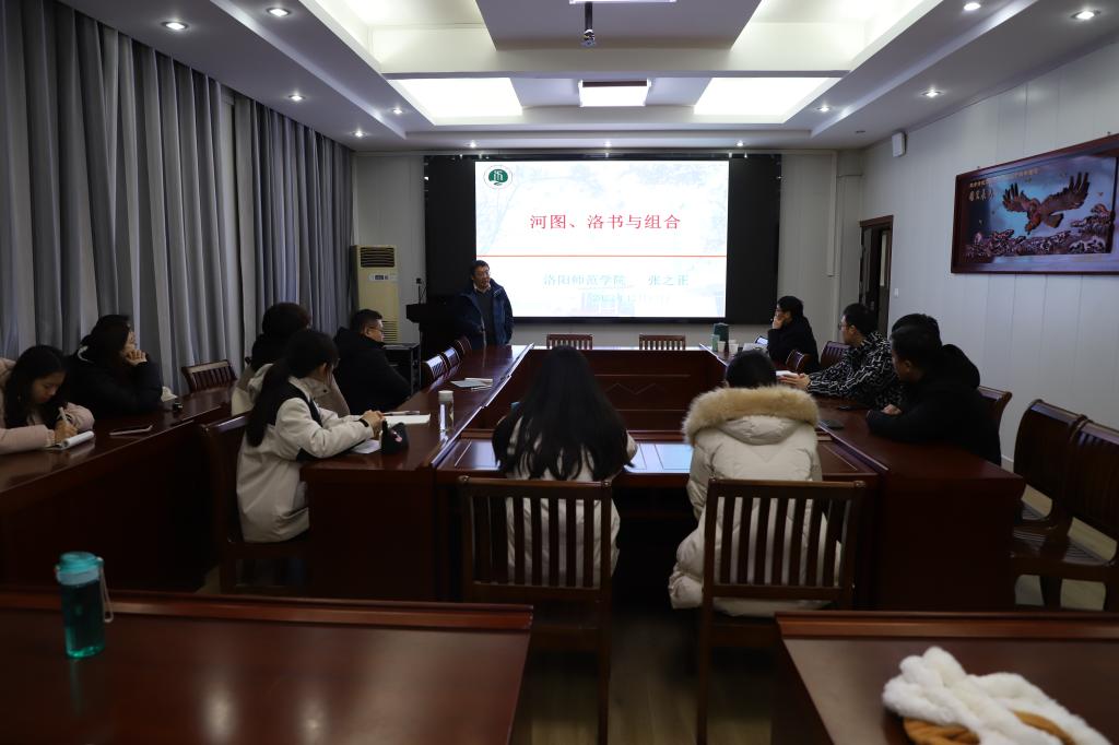 12月14日上午,应 自慰a片 邀请,洛阳师范学院张之正教授在 自慰a片 315会议室做了一场题为“河图洛书与组合数学”的学术报告。报告会由 自慰a片 院长蔡礼明教授主持,部分老师和研究生聆听了此次报告。