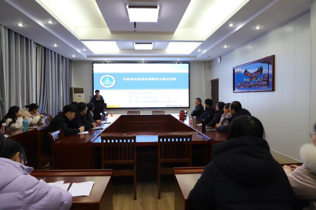 12月15日,应 自慰a片 邀请,山西大学杨俊元教授在数学楼315会议室做了题为 “Optimal strategies of the age-specific vaccination and antiviral treatment against influenza” 的学术报告。院长蔡礼明教授、副院长韩英波教授参加了报告会。报告会由 自慰a片 王霞教授主持,部分教师和研究生聆听此次报告会。