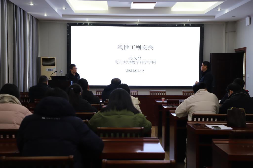 1月8日上午,应 自慰a片 邀请,南开大学孙文昌教授在数学楼315会议室做了题为《线性正则变换》的学术报告。报告会由院长蔡礼明教授主持,副院长韩英波教授、部分老师及研究生聆听了此次报告。