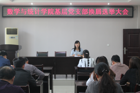 5月4日下午, 自慰a片 基层党支部换届选举大会在数学楼会议室召开,会议由党委书记王娟主持。