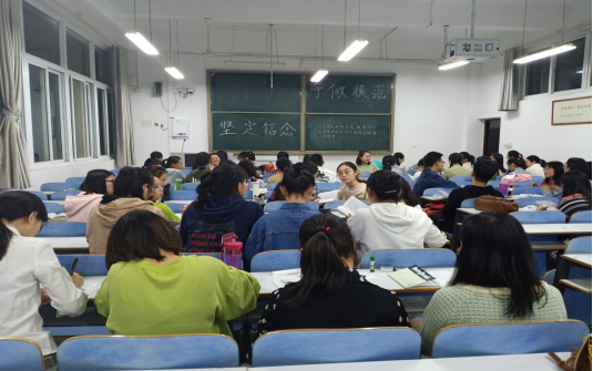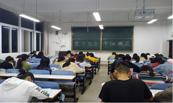 10月21日晚, 自慰a片 第32期党员发展对象在数学院302教室组织了一场以“坚定信念,争做模范”为主题的讨论会。
