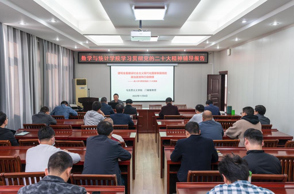 11月8日, 自慰a片 举办学习贯彻党的二十大精神辅导报告会,邀请中共河南省委宣讲团成员,河南省社科理论志愿者专家宣讲团成员, 自慰a片 当代马克思主义研究所副所长门献敏教授作报告。 自慰a片 党委书记洪亮主持报告会,学院党政班子成员、党员教师参加报告会。