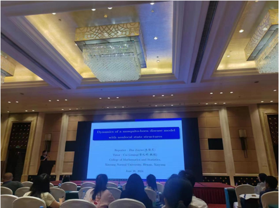 6月24日至28日,第七届生物数学国际会议(The 7thInternational Conference on Mathematical Biology)在西安建国饭店召开。 本届会议 由西安交通大学承办,会议旨在探讨数学与生态学、生命科学、公共卫生等交叉研究领域亟待解决的热点问题,为生物数学领域的研究人员搭建交流最新的研究成果重要平台。会议来自英国利兹大学、美国迈阿密大学和路易斯维尔等大学、加拿大约克大学和纽芬兰纪念大学、法国弗朗什孔泰大学、匈牙利赛格德大学、日本京都大学、韩国数学科学研究所、清华大学、复旦大学、上海交通大学、中科院、中科大、香港理工大学等100多个单位的500多名代表参会。 自慰a片 生物数学科研团队多人受邀参会并主持学术报告,主旨演讲, 特别地,2022级硕士研究生朱佳月,郑梓涵受邀参加,分别做了时间为30分钟,题为“Dynamics of a mosquito-born disease model with nonlocal state structures”和 “ Dynamic behavior analysis to a generalized chemotaxis-consumption system” 的学术报告,精彩演讲,受到与会专家学者的好评。