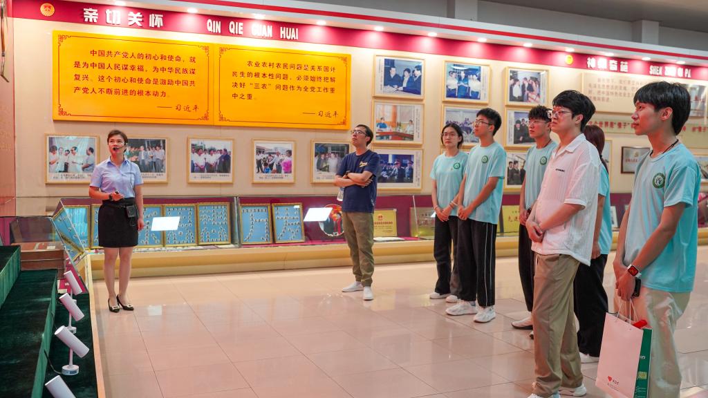 为深入贯彻落实习近平总书记关于青年工作的重要论述以及习近平总书记视察河南重要讲话精神,7月3日上午, 自慰a片 “豫”见中原——党史学习实践团赴漯河市临颍县南街村红色教育基地参观学习。此次实践活动由自慰a片 团委书记张艺成带队,专职辅导员吴成熙、杨帆与学生志愿者共同参与。