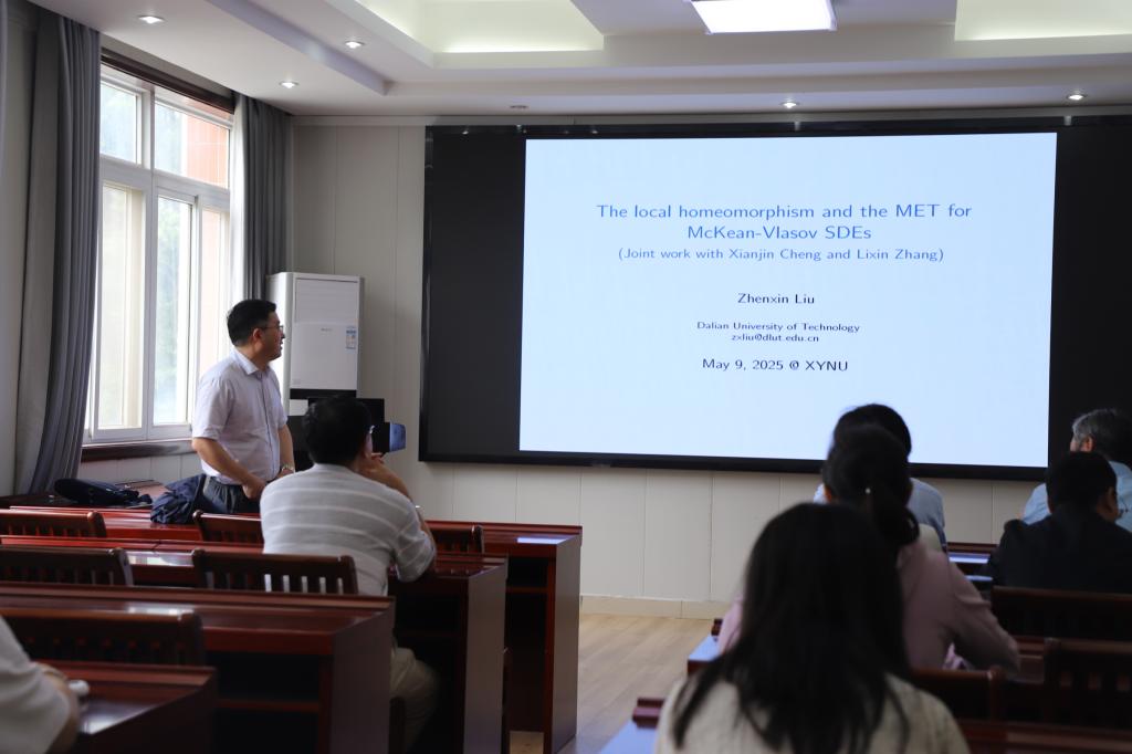 5月9日上午,应 自慰a片 邀请,大连理工大学柳振鑫教授在数学楼315会议室作了题为 《The locally homeomorphism property and the multiplicative ergodic theorem for McKean-Vlasov SDEs》的学术报告。报告会由 自慰a片 院长蔡礼明教授主持,部分教师及研究生参加了此次报告会。