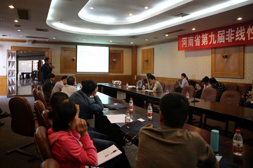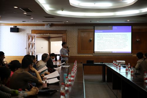 5月7日,第十七场、第十八场、第十九场、第二十场学术报告由中原工学院宋长明教授主持。第十七场来自中原工学院的张建林博士,作了题为《Global existence and asymptotic behavior of cylindrically symmetric solutions for the 3D infrarelativistic model with radiation》的报告。