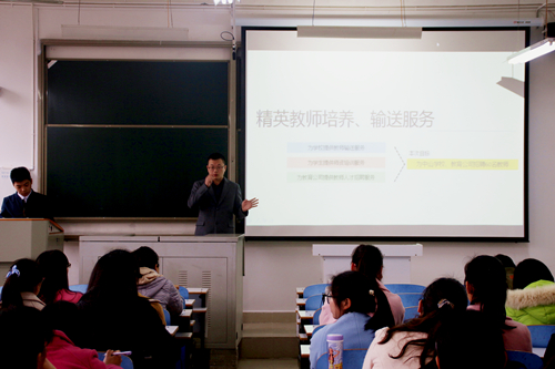 3月17日下午,(以下简称才通公司)在 自慰a片 104教室举行专场招聘会,此次招聘会主要针对我院2013级准毕业生进行教育人才招聘。近百名大四学子前来参加招聘会。