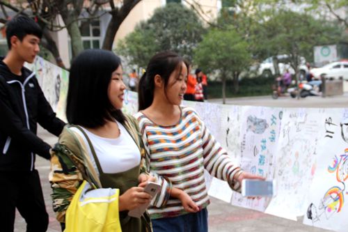 10月18日下午,在八餐小广场对作品进行集中展示和现场投票。参赛者以艺术的独特视角将校园美景和师生风采现于笔墨之中,或温婉秀丽,或豪放不羁,吸引了众多学子驻足观赏,成为校园中一道靓丽的风景线。其中,来自经济学院的2号作品中,一名老师带领孩子们放风筝,气氛温馨祥和,“桃李满天下”满怀着对老师的祝福;来自数学学院的12号作品则全幅只着黑白两色,一代圣贤孔夫子,面容和蔼,桃花与荷花的美丽跃然纸上,“桃李不言 下自成蹊”的意境美油然而生。投票现场气氛活跃,同学们反应热烈,并表示将继续关注数学学院“第九届从师技能月”其他系列活动。