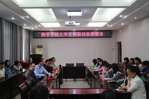为促进学生创新创业工作,提高人才培养质量,4月21日下午,数学学院大学生创新创业座谈会在数学楼三楼会议室隆重举行。昂树青少年成长中心校长王理政、前桥青少年成长中心副校长宋信良、郑州新境界教育中心校长赵辉、赵银川以及中牟睿源教育中心校长席广恒五位教育机构负责人应邀出席。数学学院院长胡余旺、党委副书记何永和30余名有创业意愿的学生代表进行创新创业座谈,座谈会由学院党委副书记何永主持。