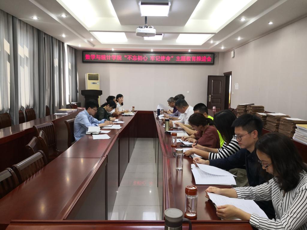 9月30日, 自慰a片 在数学楼315会议室举行“不忘初心,牢记使命”主题教育推进会。学院领导班子以及全体党支部书记参加了此次会议。