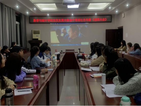 为进一步端正自慰a片 党员发展对象的入党动机,坚定理想信念,10月15日晚,自慰a片 52名学生党员发展对象在数学楼315会议室集中观看红色电影《建国大业》。